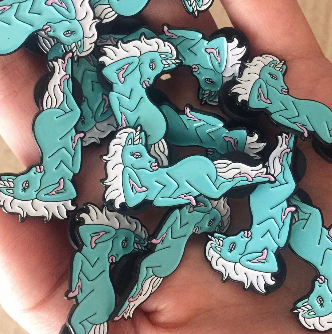 Glow the Unicorn Sunday pin is the perfect conversation starter. Glow loves to have fun and loves to shop. She plays the piano in her spare time and enjoys driving in her teal convertible. She's very slay.